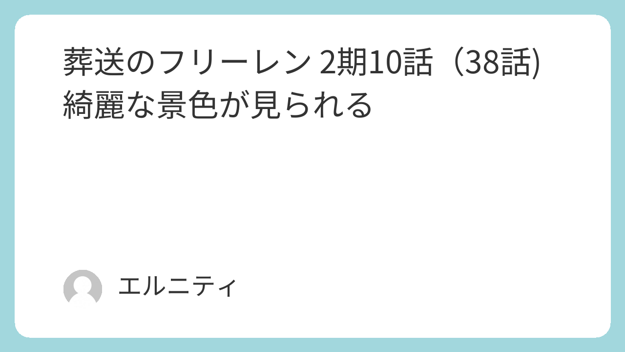 さあ始まりました葬送のフリーレン 2期10話(38話)。いよいよ最終回突入です。