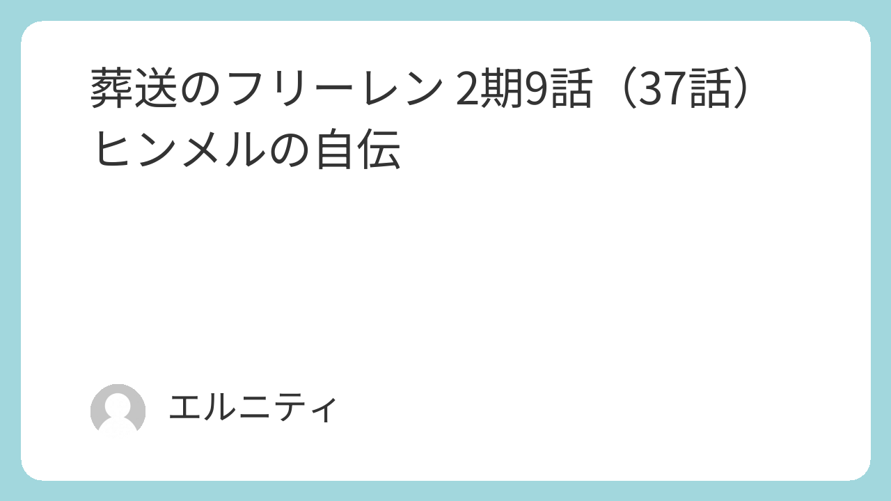 葬送のフリーレン 2期9話(37話)ヒンメルの自伝
